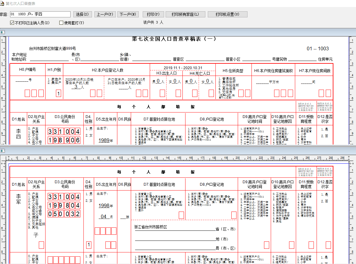 文達(dá)社區(qū)管理軟件2020版本提供人口普查表短表打印功能,可以將家庭地址、姓名、身份證號(hào)、人數(shù)等信息直接打印到普查表上,方便普查時(shí)檢查比對(duì), 支持套打和帶格式批量打印,也支持多種格式打印。有需要的客戶(hù)請(qǐng)聯(lián)系QQ:879834178 或致電:0576-82338707小朱