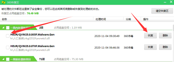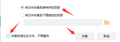 選擇恢復(fù)后信任此文件,然后點(diǎn)恢復(fù)按鈕。